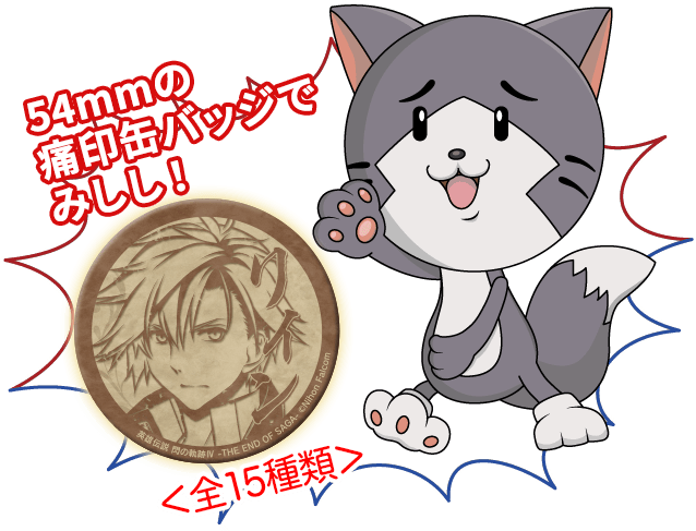 (缶バッチ:リィン、クロウ、アルティナ、ユウナ、クルト、アリサ、フィー、ユーシス、マキアス、エステル、ヨシュア、ティータ、ロイド、エリィ、ティオの全15種)