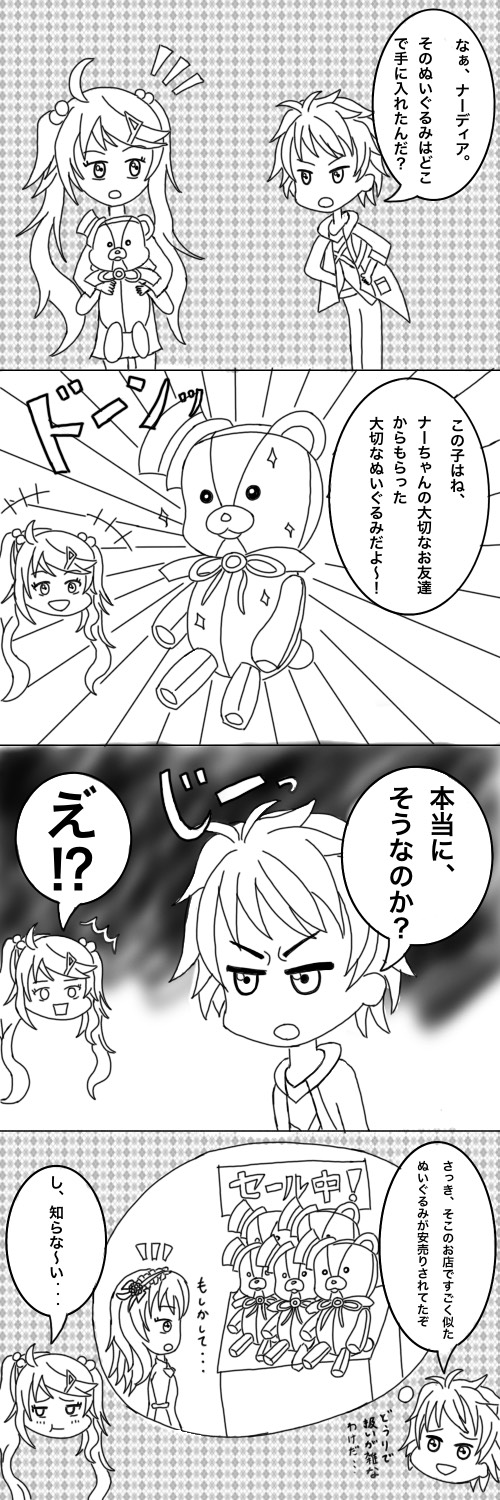 イラストに引き続いて4コマも書いてみました!なーちゃんのぬいぐるみが可愛いので、そこに焦点を当てたシナリオにしています。この度は、日本ファルコム様、40周年おめでとうございます!