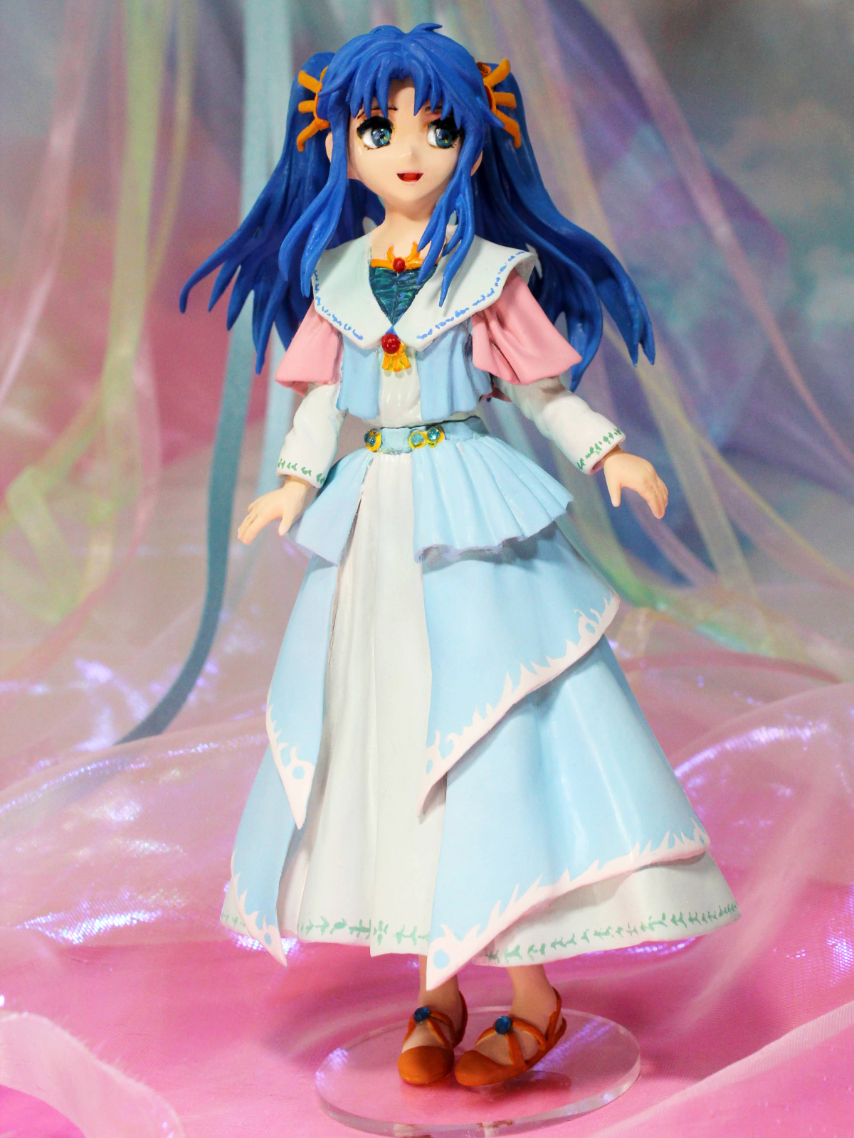 英伝OPのCGは衝撃的でした。ディーナ姫がとにかくかわいくて夢中で模写してました。その当時を思い出しながら石粉粘土やスカルピーで作りました。背景のリボンはファルコムのロゴの色に合わせています。