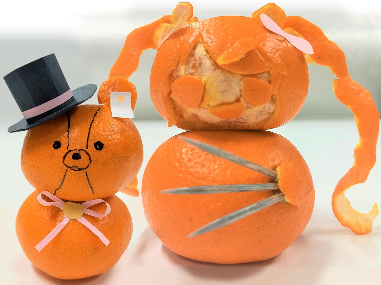 いつでも武器を手放さない殺し屋時代の最強なーちゃん。長い巻き髪がチャームポイントです。お気に入りのくまちゃんも一緒に、みかん4個使用の超大作!もちろん全部食べました。