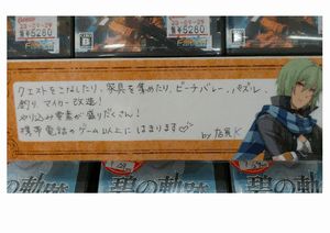 コメント: テーマは「バースト」! 売り場作りにあたり、たくさんの販促素材をご用意頂けましたので、とても嬉しい悩みを抱えることになりました。 限られたスペースで、どう素材を展開するのか。 玩具売り場担当全員で試行錯誤した結果、空中のスペースまで最大限に使用することに決まったのです。 誰もがゲーム大好きなので全員のコメントPOPでも盛り上げました。 全員で取り組んだからこそ、完成できた売り場だと思います!!