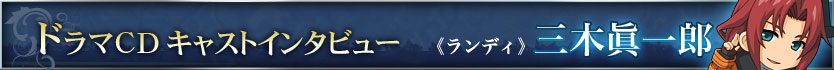 | 物語の中心にいる人はもちろん素敵に描かれているんですけど、メインどころが動いている時の同じ時間軸でのまわりの人達の動きがドラマとして描かれていたら面白いんじゃないかなと思います。そうするとCDを聞いた人が「あの時の誰々さんはこう動いてたんだ」とかリンクすることもできますしね。そういう楽しみ方ができるものもあればいいなと思います。仮に、全編かっこいいランディだと自分が耐えられないだろうな(笑)。 |