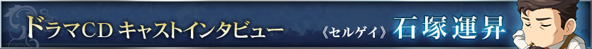 | インベーダーゲームでも僕は全然ダメでゲームから遠ざかっていたんですけど、今はそういう技だけじゃなくて自分が主人公になれるようなゲームもあって、戦うだけじゃないってところが面白いと思います。そんな自分だけのドラマを作って楽しむようなところに参加できてよかったです。皆さまセルゲイの声は嫌じゃなかったでしょうか?できれば僕にOKを出していただければいいなと思います(笑)。 |