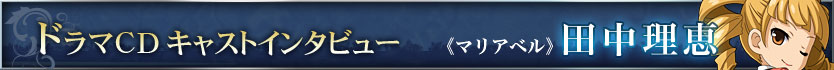 | ドラマCDではちょこっとしか出てないですけども記念すべき初出演なので、こんな雰囲気なんだっていうのを感じていただきたいです。次でまたマリアベルが出られたらいいなと思いました。 |