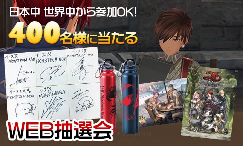 「イースIX-Monstrum NOX-」発売を記念して、400名様に当たるWEB抽選会を開催いたします!「イースIX」序盤をプレイして簡単なクイズに答えて豪華景品をGETしよう!!