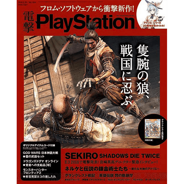 Vol.664は、E3 2018で鮮烈なデビューを飾った『SEKIRO』を表紙&巻頭大特集!! 『閃の軌跡IV』『ネルケと伝説の錬金術士たち』『勇者ネプ』『メアリスケルター2』『New ガンダムブレイカー』といった新作特集も盛りだくさんです! さらに特別付録は『グランクレスト戦記』冊子、『GOD WARS 日本神話大戦』などのコード付録もついてます!!