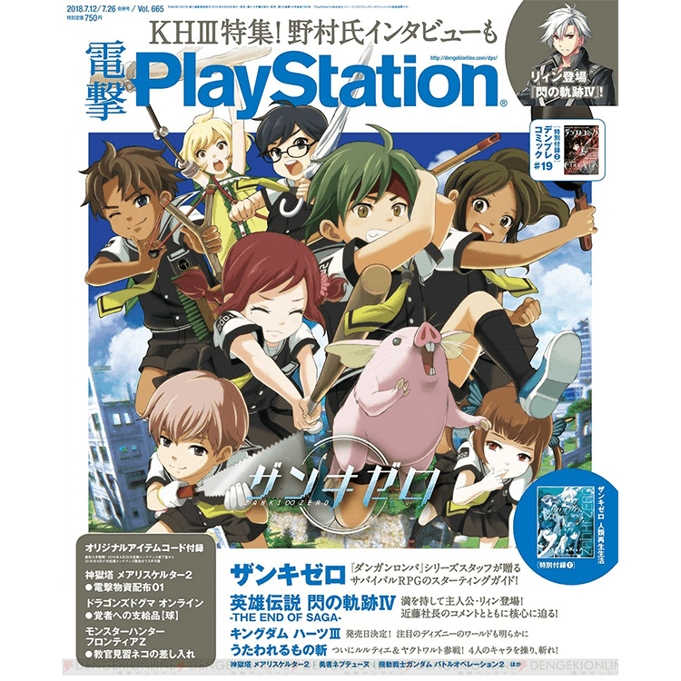 Vol.665は、表紙の『ザンキゼロ』を付録冊子12Pで大特集!! また『閃の軌跡IV』『KHIII』『ディスガイア Refine』『メアリスケルター2』『勇者ネプテューヌ』『うたわれるもの斬』といった新作特集も満載です! さらに特別付録として“デンプレコミック #19”に加え、『メアリスケルター2』などのコード付録もついた、月刊化直前の特大合併号!!