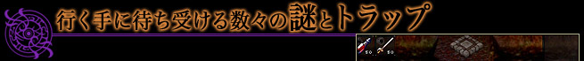 ダンジョンの中は多種多様のトラップが仕掛けられ、プレイヤーの行く手を遮ります。ダンジョン内にはヒントがあり、その謎を解きながら仕掛けをうまく回避していこう!