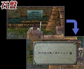 ダンジョン内にある石盤には攻略の助けとなるヒントなどが記されてます。それらを見つけ、ダンジョン探索に役立てよう!