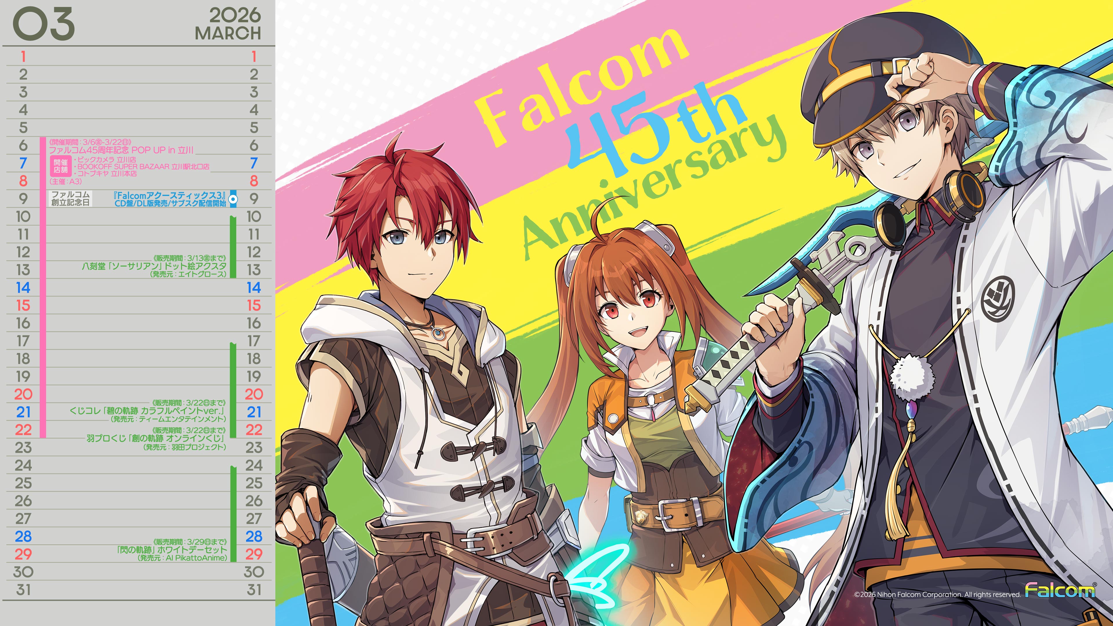 ファルコムタイトルのゲームマニュアル(PDF)や、PC用壁紙、販売店様向けの販促物用素材をダウンロードいただけます。