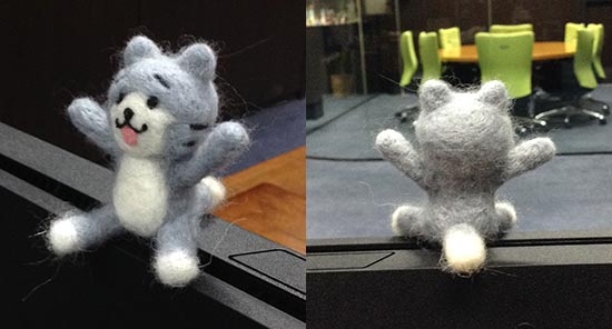 このみっしぃは、頭、胴、手足、しっぽ、耳をそれぞれチクチクして作って、それをチクチクして絡めくっつけて、白い部分もチクチクして、目などもチクチクして…と作りました。