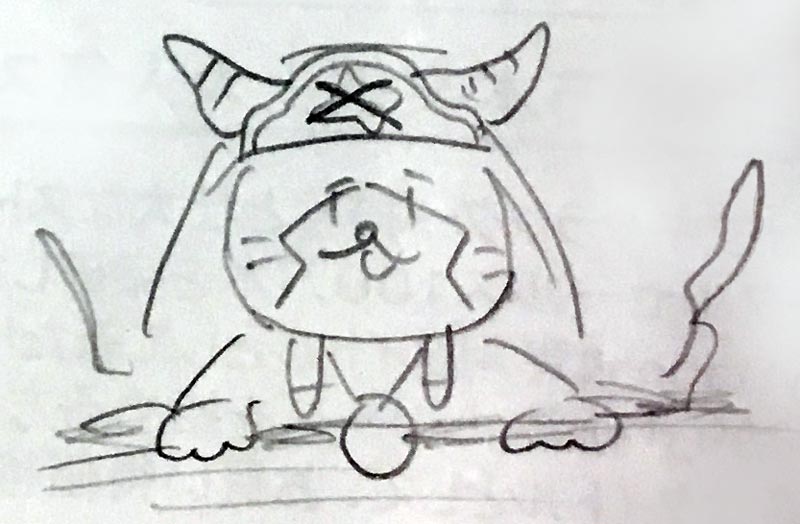 ゆるみっしぃアドルのアイディアがまとまらない時に、背教者も一案として描いていました。地面から、ぬぬぬっと出てきているところです。