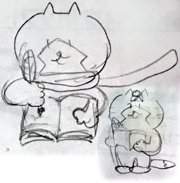 ここで、冒険日誌を書いているところにしたら?アドルーみたいにしたら?というスタッフのアドバイスをもらいちょこちょこ下書きを描いてイメージをまとめていって