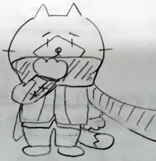 白猫、人形はスムーズに決まり、最後はやはり主人公アドルだよなと思い描いてみました。が、どうにもこうにもちょっと特徴がうまく出せず、いかの画力ではこれが限界でした。