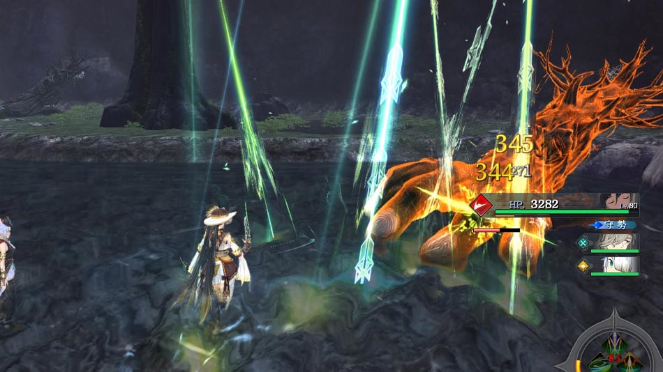 赤い焔の爪あとを残したあと、ジャンプをしてさらに攻撃を与えるという、2段階の俊敏な動きにうっとりしてしまうスキル。かっこいいです。一撃目が敵に当たらない場合はそのあとのジャンプ後のアクションが起こらないことが判明。なんて無駄がないのでしょう!