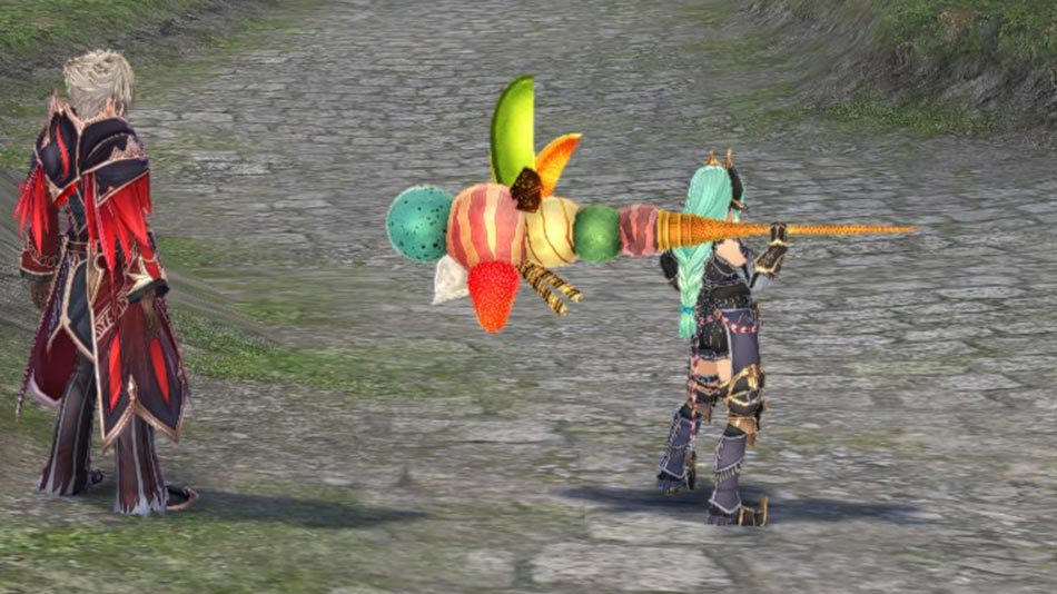 ここからは、ゲーム内で手に入る色替えバージョンの衣装たちと、PSストアで購入できる「デリシャスウェポンセット」の組み合わせをご紹介。