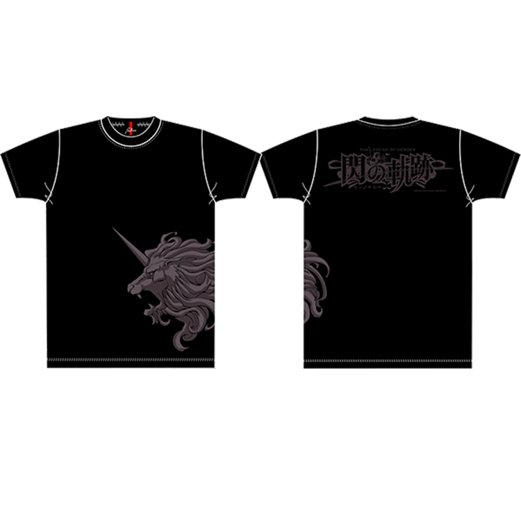 『英雄伝説 閃の軌跡』デザインのTシャツ!黒地にトールズ士官学院の獅子の紋章が浮かぶシックでシンプルなデザインです。