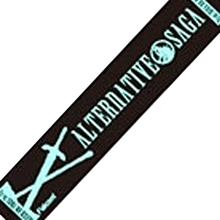 光に当てると暗闇で『ALTERNATIVE SAGA』のロゴが浮かび上がる蓄光マフラータオルです。