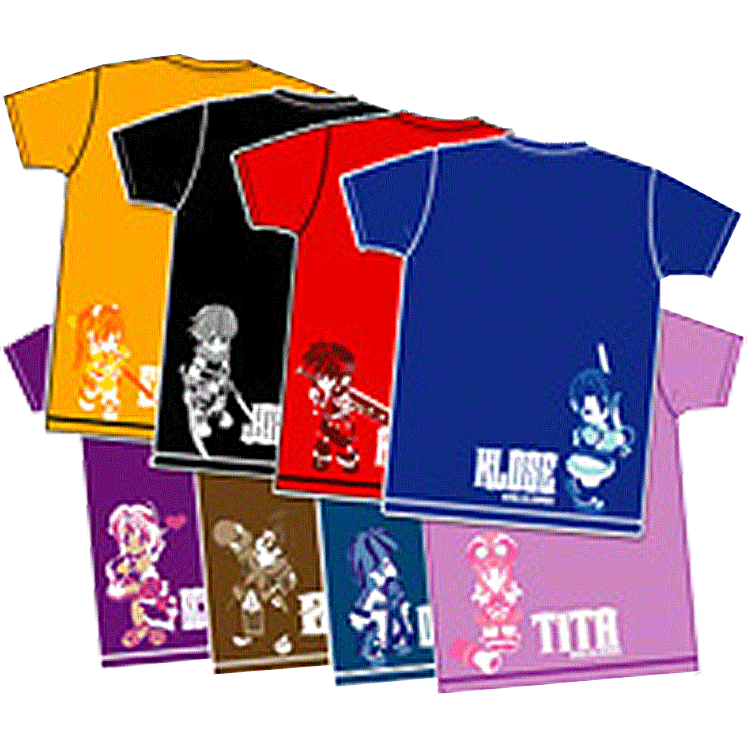 各キャラのイメージカラーを使用した生地に、フロントにはニューオーブメント(導力器)がデザインされ、バックにはキャラクターの戦闘勝利ポーズがシンプルな色合いでプリントされている。
