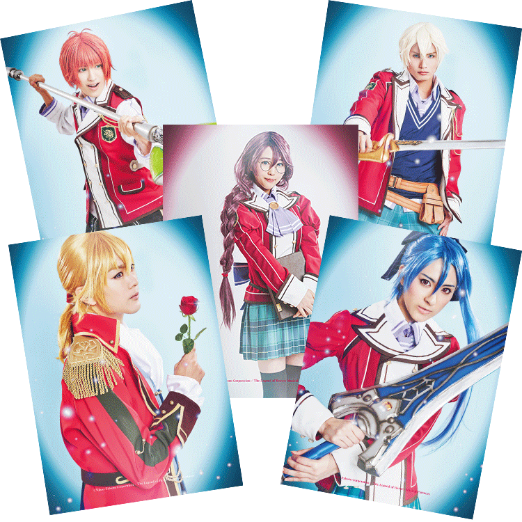 2017年1月8日~15日Zepp ブルーシアター六本木 で上演されたPREMIUM 3D MUSICAL『英雄伝説 閃の軌跡』の出演者のキャラクタービジュアルショットを3枚1組にしたセットです。
