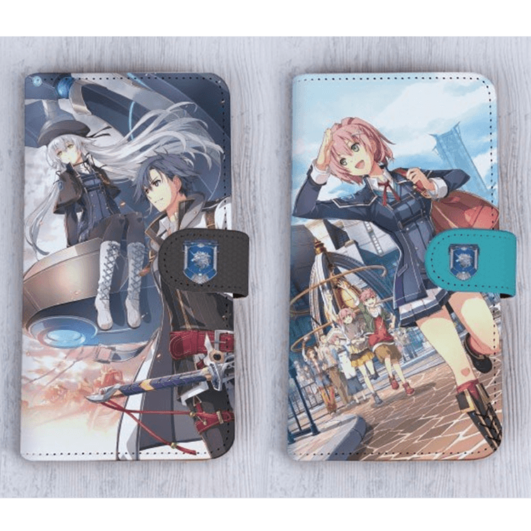「閃の軌跡III」のイラストを使用した手帳型スマートフォンケースが登場!シリコン接着シートにスマートフォンを固定を固定するタイプで、スマートフォンを上下にスライドすることで、カメラ機能をお使い頂くことが可能です。