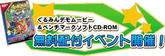 | 「ぐるみん」ベンチマークソフトとデモムービー高画質版が収録された「ぐるみんデモムービー&ベンチマークソフトCD-ROM」の配布会イベントが開催決定!配布会は以下の店舗で行われます。店舗によって開催日が違うので注意! ※配布方法は店舗によって異なります。詳細は各店舗に直接お問い合わせ下さい。 |