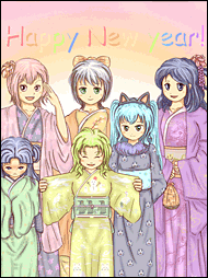 特務支援課で直接戦ったメンバーでお正月の記念撮影です。リーシャの右にはロイドとダドリー、ノエルの左にはランディとワジが居るはず・・・課長は緊急招集中です。着物の柄は意識的にフリーダムな感じにしました。