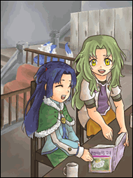 支援課ビルでキーアとシズクが読書中。後ろのツァイトも寛ぎながら二人を守っています。この二人は本当に可愛いです。