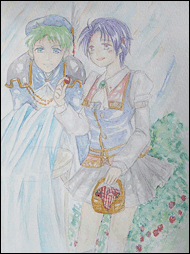リベールといえばこのおふたり!ちょっと早いですが、いちご狩りっぽく書いてみました。(アルモリカ村にいちご畑があったらいいなぁなんてw)零や碧では学生服姿のクローディア姫を拝見できませんでしたが、殿下!大好きです!
