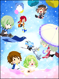 夜空を散歩する支援課メンバー♪ふわふわの綿菓子のような雲にほわほわのキャラクターたちがとてもかわいいです。
