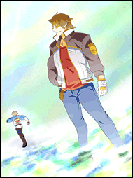 碧の軌跡のラスト、零の世界でのロイドとガイのお別れのシーンを描いてみました。一人称が「僕」に、「兄貴」が「兄ちゃん」に変わる所で、ロイドもまた弱音を押し込めて頑張っていたんだと感じさせてくれる印象深い場面です。