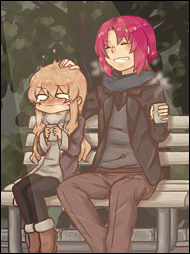 頭をなでられドッキンドッキンのミレイユさんがとてもかわいく描かれていますね。二人とも私服で新鮮です♪
