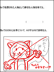 テストの答えがわからなくてみっしぃを描いたら、みっしぃも訂正されてしまいました。というラクガキです。