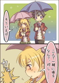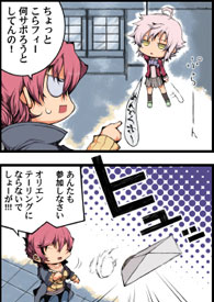 1コマ目のフィーがかうわいいい!こんなアイテム発売されたりしないかなぁ。ぷらぷらフィーちゃんとかそんな商品名はいかがでしょう。 |