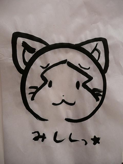 戸棚でひっそりと眠っていたみっしぃ。中学時代、習字の授業の終わりに余った墨でこっそり書きました。