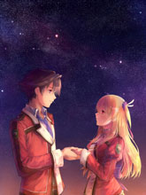 キャンプファイヤーの明かりが照れた頬を照らしすごくとてもキレイですね。ムード満点!キャラも星空もとても丁寧に仕上げてくださいました。 |