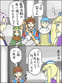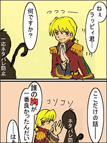 4コマ目のヨシュアが戦っているときのヨシュアよりもこわいですw3コマ目のラッピィがとってもかわいいです。さりげなく頬を赤らめています。