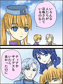 しみじみとティア&サイアスをアイシャのように懐かしんでいたら…4コマ目!想像もしていなかったオチに驚きましたw優しい顔して、容赦ないアドルが面白かったです。