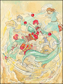 - アドルとドギ、2対2の乱戦シーン。煙が巻き上がるほどの白熱バトルを見事に描いて頂きました!リリアのサポートで勝利が掴めるといいですね。