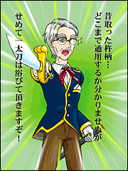 凛ンとしたフィリップさんかっこいい!左メガネのレンズがキラリと光っているところがとてもいいですね。突き出している刀と、背景の効果が迫力を増してくれていますね。