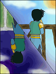 二つのシーンを重ねて表現してくださったアイディアがとても面白いですね。ハーモニカを吹く後姿は同じようなのに、伝わってくるヨシュアの想いは違いますね。背景なども交えてその違いがよく表されていると思います。