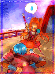 彼が後ろに持っているものまでしっかりと描き表してくれました。困惑するエステルの表情が面白いですね。機体と遠くまで続く空がとってもキレイで気持ちいいです!