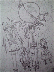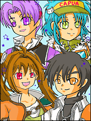 4人が大きく描かれていてエステルたちの元気な声が聞こえてきそうなイラスト作品です。散らばる★もとてもかわいいです。4人の表情が明るいので、見ているこちら側までエネルギーが溢れてきますね。