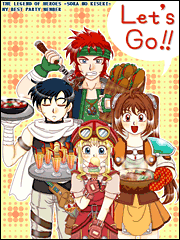 設定がとっても面白いです。食べ物に頼るパーティ!描かれた料理全てとっても美味しそうです!ティータのバックにはクレープも隠れていて細かいところまで丁寧に描かれていて見応えたっぷりです。とても元気になる1枚です。