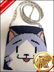 - ニードルポイントで、みっしぃのポシェットを作りました。ウール糸の手触りが
