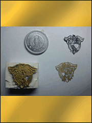 - 遊撃士のエンブレムで消しゴムハンコを作りました。ただ1円玉のサイズに合わせたので小さすぎて結構潰れてしまいました……心の目で補完してください!左下がハンコで、右下が押した見本で、右上が下書きに描いたものです。