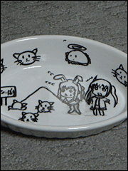 - 楽焼きというペンでミッシーぼりでミッシーを釣り上げているティオ皿を作ってみたんですが、そう見えるかなぁあ?