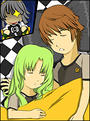 - ロイドとキーアに流れる平和な時間が感じられる素敵な1枚です。寝顔を狙うグレイスさんの目が光っていてコミカルな感じもGOOD。癒しと笑いの両方を味わえる作品です。