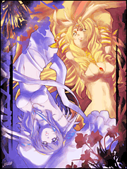 - 太陽と月の姫を対照に描いてくれた作品。キャラクターの表情などすごい神秘的で独特な雰囲気を出しています。すごくキレイな1枚だと思います!