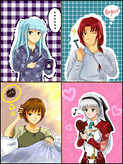 - それぞれの朝の光景。4人の個性が出ていて良いですね♪やっぱり、ロイドはお寝坊さんですねww意外だったのは、ランディのひげ剃り!男の身だしなみですね。